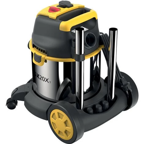L’aspirateur SXVC20XTE aspire à la perfection poussières, liquides, saletés solides et grosses. Il est particulièrement indiqué pour les applications non seulement domestiques comme garages ou caves, mais aussi typiquement professionnelles comme chantiers de construction, ateliers industriels, ateliers de réparation automobile, lavages automobiles ou activités artisanales (par exemple, menuisiers, plombiers, préposés à la maintenance).La cuve à déchets de 20 litres en acier inox est extrêmement solide, robuste et résistante aux chocs éventuels. Dès que la cuve est pleine, le flotteur interne interrompt l’aspiration et signale le besoin de vidage. Le verrouillage/déverrouillage rapide du couvercle facilite le vidage de la cuve.L’aspirateur SXVC20XTE englobe aussi la fonction souffleur, très utile pour nettoyer les endroits difficilement accessibles ou impossibles à aspirer, par ex. les graviers.SXVC20XTE comporte un double système de filtration ultra efficace, composé d’un filtre cartouche haute efficacité lavable qui protège le moteur contre les poussières fines et les liquides, et d’un sac filtrant en papier dans lequel s’amasse la saleté solide pour en prévenir la dispersion dans la cuve.SXVC20XTE est un aspirateur à liquides léger, maniable, peu encombrant et, par conséquent, pratique à transporter, sur un fourgon par exemple. La poignée et les roues simplifient le déplacement. Les deux roues arrière de 18 cm de diamètre optimisent la stabilité, y compris sur sol irrégulier, comme celui des chantiers. Après l’emploi, tous les accessoires et le câble électrique se rangent dans les logements prévus à cet effet. PLUS•Puissant bidon aspirateur multifonction pour solides et liquides avec fonction souffleur, cuve à déchets en acier inox solide et résistant, indiqué pour les applications domestiques et professionnelles comme les chantiers de construction, les ateliers industriels, les ateliers de réparation automobile•Double système de filtration : filtre cartouche haute efficacité lavable + filtre en papier, qui apportent au moteur une protection totale contre les poussières fines et les liquides•Accessoires inclus : 1 flexible d’aspiration résistant à la torsion de 2 m ; 3 tubes d’aspiration en métal de 33 cm ; 1 suceur sol pour liquides ; 1 suceur sol pour solides ; 1 suceur tapis de sol et fauteuils ; 1 suceur fentes•Avec la prise intégrée pour outils électroportatifs incluant MARCHE/ARRÊT automatique, l’aspiration se met en marche dès que l’outil est utilisé pour aspirer immédiatement toute la poussière produite•Puissance absorbée (kW) 1,4 ; Dépression (mbar) 180 ; Débit d’air (l/s) 33 ; Capacité cuve (l) 20 ; Longueur du câble électrique (m) 5 ; Diamètre des tubes et flexibles d’aspiration (mm) 35CONTENU DE LA BOÎTEAspirateur ; flexible d’aspiration (2 m) ; 3 tubes d’aspiration en métal (3×33 cm) ; filtre cartouche haute efficacité ; sac filtrant en papier (20 l) ; suceur sol pour liquides ; suceur sol pour solides ; suceur tapis de sol et fauteuils ; suceur fentes ; adaptateur outils électroportatifs