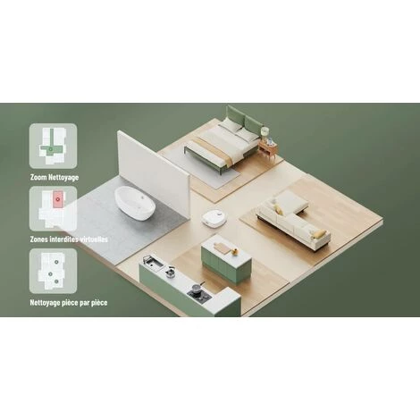 Choisissez parmi 3 modes via l’application – aspiration, nettoyage et nettoyage tout-en-un – pour créer la session de nettoyage idéale. Balayez les tapis, nettoyez la salle de bain ou passez l’aspirateur sur les sols durs.