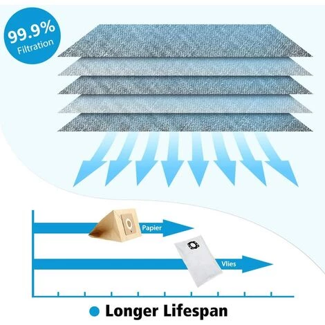 [Compatible] Très approprié pour Karcher WD4 WD5 WD5 / Premium / MV4 / MV5 / MV6, remplace 2.863-006.0.[Filtration maximale] anti-déchirure 5 couches de sac filtrant anti-poussière en micro-polaire, réduisant 99,99% des particules qui rentrent, améliorant la qualité de l’air pour vous et votre famille.[Facile à installer] Le couvercle en plastique de haute qualité peut être installé de manière stable et sûre dans l’aspirateur eau et poussière Karcher. Il peut également protéger l’intérieur, notamment le moteur de l’appareil, de la pollution par les poussières.[Prolonger la durée de vie] Afin de protéger les performances de nettoyage du filtre et de réduire l’entrée de poussière, de pollen et d’autres allergènes dans l’air, nous vous recommandons de le remplacer tous les 2-3 mois.[Liste de colisage] L’envoi comprend 8 sacs filtrants anti-poussière. Les dimensions du sac sont de 19,9 x 16,6 pouces (50,6 x 42,3 cm).