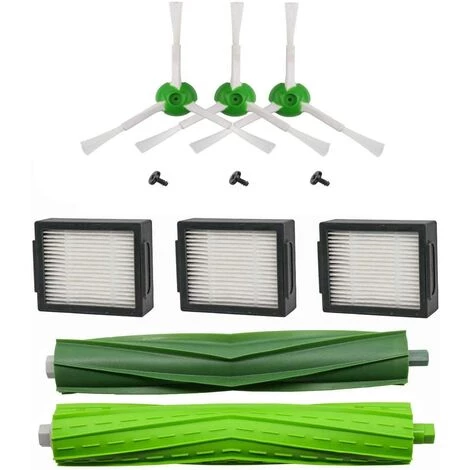 Accessoires compatibles avec Roomba i7 et i7+, e5 e6 e7. Le kit comprend les composants suivants : 3 x filtres 3 x brosses latérales 3 x vis 1 rouleau à cheveux 1 x Flex-Roller Eraser Remarque : Si les brosses latérales ne sont pas droites, elles ne doivent pas être manquées en raison d’un mauvais transport. La brosse peut être trempée dans l’eau chaude pendant quelques minutes puis remise dans sa position initiale. Et sortez l’eau et essuyez.