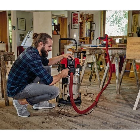 L’aspirateur eaux et poussières TE-VC 2340 SAC est un appareil multifonctions qui assure un nettoyage en profondeur. L’aspirateur ECO est équipé d’un système de filtration qui permet d’aspirer et de retenir aussi bien les salissures grossières que les microparticules, qu’il s’agisse de poussières de plâtre ou de perçage, de poussières de bois ou de pierre sur les chantiers ou dans l’atelier, ou de particules fines issues des sièges et des tapis de la voiture.