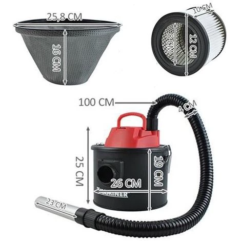 Le conteneur en acier inoxydable garantit sa longévité et sa résistance. Des crochets en métal permettent de fermer et d’ouvrir la cuve. Le tuyau d’aspiration en acier galvanisé reste suffisamment souple pour aspirer les cendres dans le poêle à bois ou la cheminée.