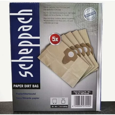 Kit 5 sacs papier pour aspirateur Scheppach ASP20-ES ASP30-ES et ASP30-OES.