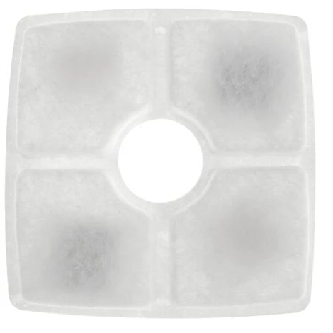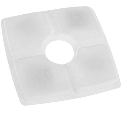 - Forme carrée de taille 124 x 124 mm. Trou central pour le passage de l’eau à l’extérieur. Paquet de 4 filtres. Durée du filtre de 2-4 semaines.